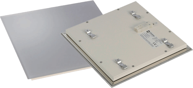 גוף החימום פועל בשיטה של אינפרא-רד בשילוב זכוכית חלבית וניתן להתקנה שקוע בתקרת גבס ו/או מותקן צמוד לכל תקרה (אין פליטת חום כלפי מעלה)